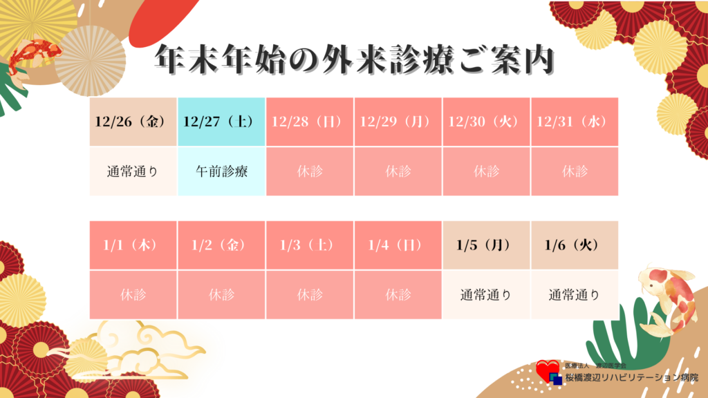 2025年の年末と2026年の年始の外来診療は、以下の日程で行います。